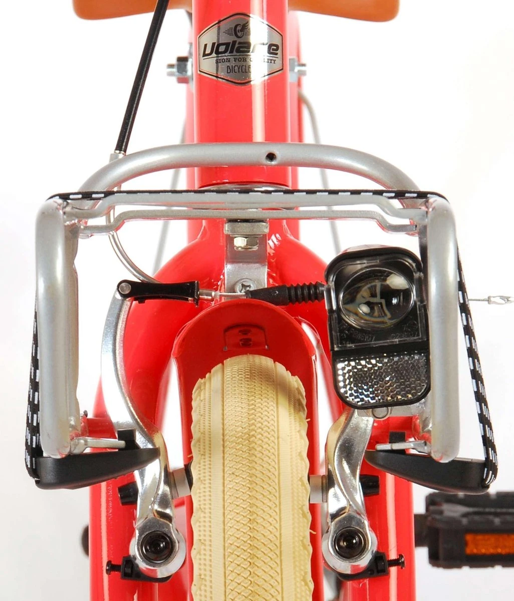 Veiligheid staat voorop! Daarom heeft deze gave fiets een handrem en terugtraprem. Daarnaast heeft de fiets reflectoren in de wielen, verlichting op batterijen en een leuke bel. Ook aan het comfort is gedacht. De mooie koraal rode Melody fiets heeft een extra licht aluminium frame, zachte handvaten van kraton, een handige voordrager met snelbinders, en een standaard zodat je fiets netjes blijft staan. Om zo lang mogelijk van de fiets te kunnen genieten heeft de fiets een extra lange zadelpen waardoor de fiets nóg langer meegroeit en is het stuur in hoogte verstelbaar.